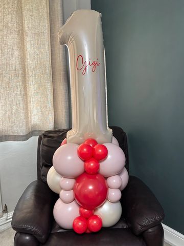 This includes a single digit balloon stack in a colour of your choice & a added name to suit the colour scheme.